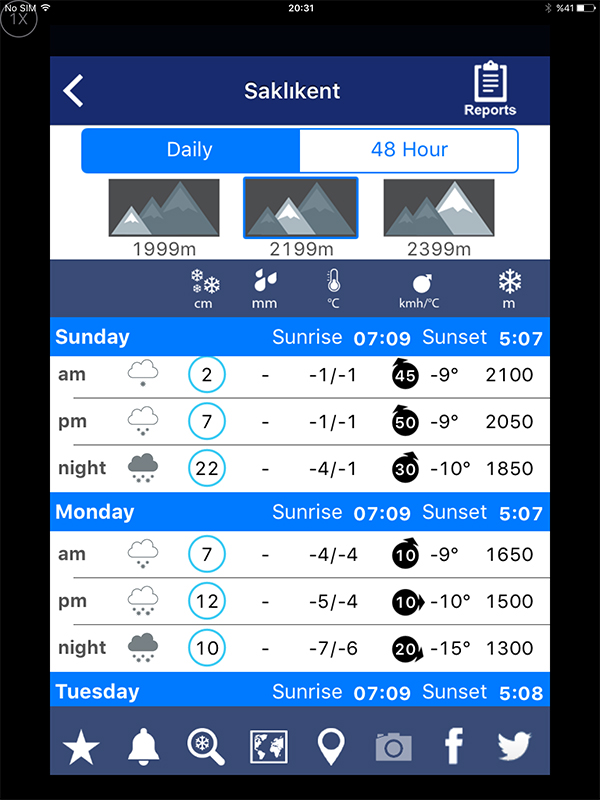 Önceki yıllarda gönlümüz pek razı olmasa da sonuçta Aralık ayını Antalya’da kayak sezonunu açmadan geçirmeye razı oluyorduk. Bu yıl ise neredeyse Ocak da geçti geçecek, henüz sezonu açamadık. Global ısınma diye yorumluyor çoğunluk. Tam da bunu düşünürken snow-forecast’ten kayakçılara müjde gibi gelen bir mail içimizi rahatlattı. Aşağıdaki ekran görüntüsünden de anlaşılacağı üzere birkaç gün içinde Bakırlı Tepe’ye yarım metreden fazla kar geliyor. Pazar şiddetli tipi var. Ardından hava Çarşamba ve Perşembe açacak.